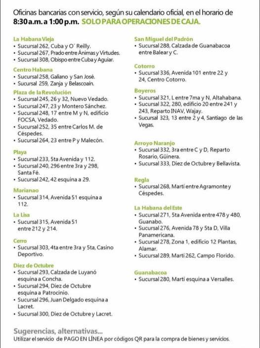 Para operaciones de caja, en el horario de 8:30 a.m. a 1:00 p.m.