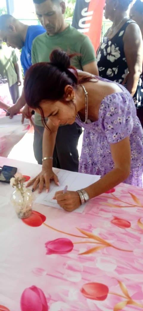 El acto contó con la presencia de Zulia Muñoz González, primera secretaria del Comité Municipal del Partido en el Cotorro; Yerandi Delgado Pérez, presidente de la Asamblea Municipal del Poder Popular; y Álvaro Álvarez Torres, intendente municipal, quienes fueron los primeros en firmar.