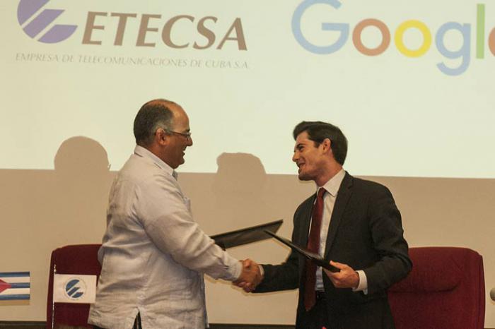 Un Memorandum de entendimiento para comenzar la negociación de un posterior acuerdo de servicio de intercambio de tráfico de Internet, conocido técnicamente como peering, con el objetivo de mejorar la calidad de acceso a los contenidos de la web, fue firmado este jueves en La Habana por La Empresa de Telecomunicaciones de Cuba S. A. (ETECSA) y la compañía norteamericana Google