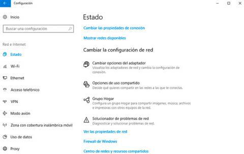 Esta función te permite crear muy rápidamente un grupo compuesto por otros equipos que se encuentren en la misma red doméstica y que entre ellos se compartan ficheros. Para configurarla, haz clic en el botón Inicio, selecciona el engranaje para acceder a la Configuración y luego navega por Redes e Internet, Estado. Aquí, busca el epígrafe Cambiar la configuración de red y selecciona la opción Grupo Hogar.