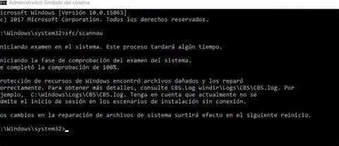 Una vez que el análisis concluya, verás un mensaje que indica si se han encontrado archivos dañados y si ha sido posible repararlos. En caso necesario, reinicia el sistema para que se apliquen los cambios.