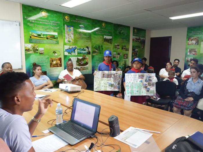 Participantes de la II Jornada Científica Cuenca Este 2020, que organiza el Grupo de Trabajo Estatal-Bahía Habana (GTE-BH), muestran conocimientos adquiridos en círculos de interés, sociedades científicas y comunidades.