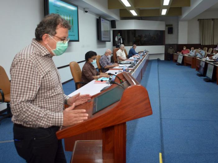 La sesión de trabajo sobre el maíz híbrido transgénico del CIGB incluyó un dictamen sobre el proyecto, que estuvo a cargo del Dr. C. Alexander Miranda Caballero, director del Instituto Nacional de Ciencias Agrícolas del Ministerio de Educación Superior (MES).