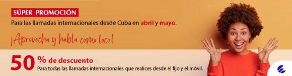 La Empresa de Telecomunicaciones de Cuba (ETECSA), dio a conocer que durante los meses de abril y mayo se realizará un descuento del 50 % de las llamadas de larga distancia internacional desde teléfonos fijos, móvil o a través de tarjetas propias.