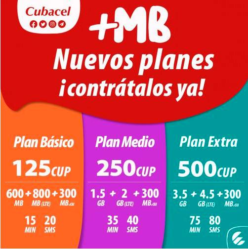 De acuerdo con la nota, los nuevos planes de Cubacel ofertan más MB por el mismo precio, y adicionan minutos y sms. Se pueden adquirir marcando *133# opción 5, y también se puede disfrutar de la nueva consulta integrada en la opción *222#.