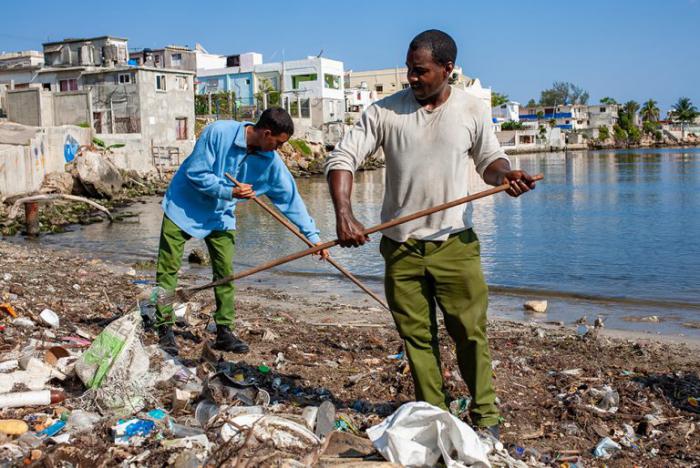 En la mañana de este 16 de abril se realizaron trabajos voluntarios de saneamiento de las costas que abarcan todo el litoral de Cojímar. La mayor fuerza de trabajo se concentró en la playita El Cachón, siendo este el lugar más afectado por los residuos y desechos que llegan hasta las aguas que bañan esta pequeña playa.