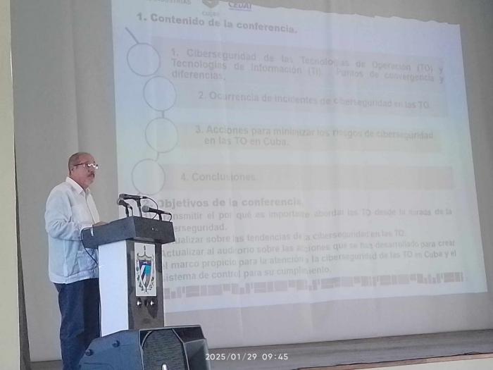 En la primera jornada del cónclave se realizó la Conferencia magistral de, José Gaspar Álvarez, viceministro de Industrias, sobre Tendencias de la Ciberseguridad en las tecnologías operacionales.