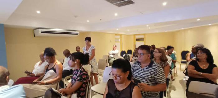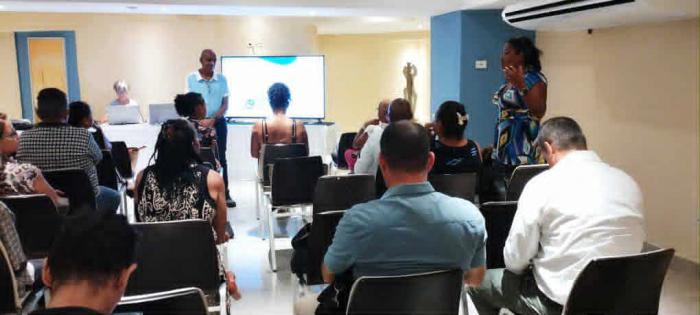 La segunda parte del taller estuvo dedicada a la presentación del diagnóstico en las estrategias del Ministerio del Turismo y del Ministerio de Industrias. Al respecto, Ana Lidia Beltrán Marín, del Ministerio del Turismo, expuso cómo la aplicación de la guía le había permitido al organismo identificar vacíos en el tema de la gestión de los residuos plásticos.