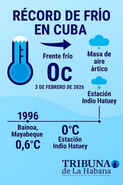 Por primera vez en Cuba un termómetro marcó los 0 grados Celcius (°C), registrándose el récord de temperatura mínima en el país en el poblado de Indio Hatuey, en Matanzas.
