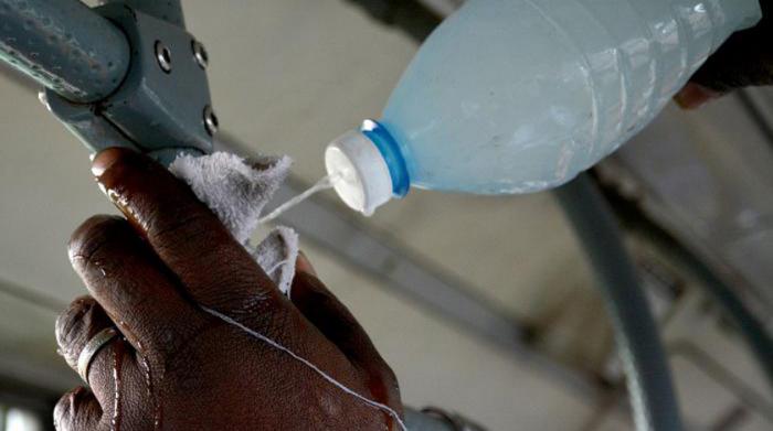 El proceso está establecido para que, una vez llegue la guagua a la terminal, un equipo comience con la desinfección con soluciones de cloro de los pasamanos, asientos, puertas y otras superficies.