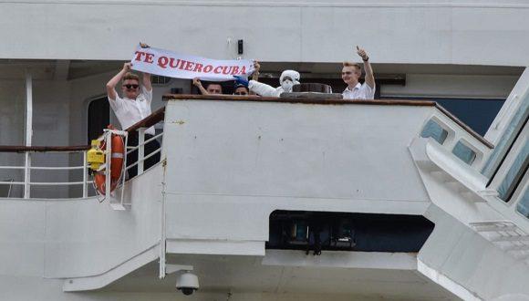 En agradecimiento a la disposición de Cuba, los viajeros mostraron carteles donde se leía Te Quiero Cuba.