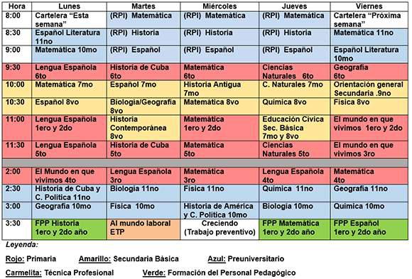 Exhortamos a la familia a colaborar y crear las condiciones apropiadas para que estas emisiones sean visionadas por los estudiantes y realicen las actividades que se orienten, para contribuir al cumplimiento exitoso de los objetivos de las diferentes disciplinas.