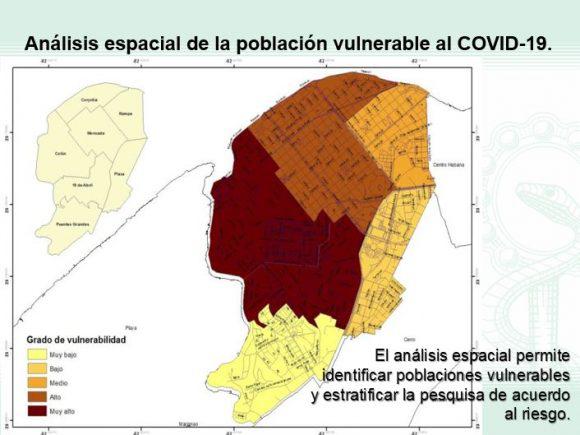 Hay otra propuesta para el análisis espacial de la población vulnerable a la COVID-19, la cual se está validando en el municipio habanero de Plaza de la Revolución. También se está trabajando en la movilidad por celulares, para evaluar las medidas del Gobierno.
