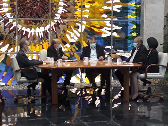 El Dr. Eduardo Martínez Díaz, presidente de BioCubaFarma, comentó durante su intervención la compleja situación que vive hoy la humanidad. “No lo digo en el sentido alarmista, pero sí para que tengamos la justa percepción del riesgo que requiere. Es una batalla dirigida por la máxima dirección del país, pero en la que todos tenemos que participar para salir victoriosos”, enfatizó.