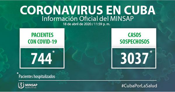 Al cierre del día de ayer, 18 de abril, se encuentran ingresados en hospitales para vigilancia clínico epidemiológica 3 mil 37 pacientes. Otras 8 mil 134 personas se vigilan en sus hogares, desde la Atención Primaria de Salud.