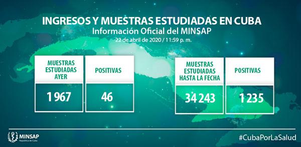Al cierre del día de ayer, 22 de abril, se encuentran ingresados en hospitales para vigilancia clínico epidemiológica 3 mil 359 pacientes. Otras 5 mil 681 personas se vigilan en sus hogares, desde la Atención Primaria de Salud.