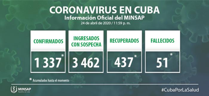 Al cierre del día de ayer, 24 de abril, se encuentran ingresados en hospitales para vigilancia clínico epidemiológica 3 mil 462 pacientes. Otras 6 mil 560 personas se vigilan en sus hogares, desde la Atención Primaria de Salud.