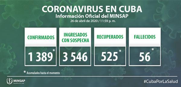 - Ciudadano cubano de 39 años de edad, residente en el municipio Cienfuegos, provincia del mismo nombre. Contacto de caso confirmado anteriormente. Se mantienen en vigilancia 49 contactos.