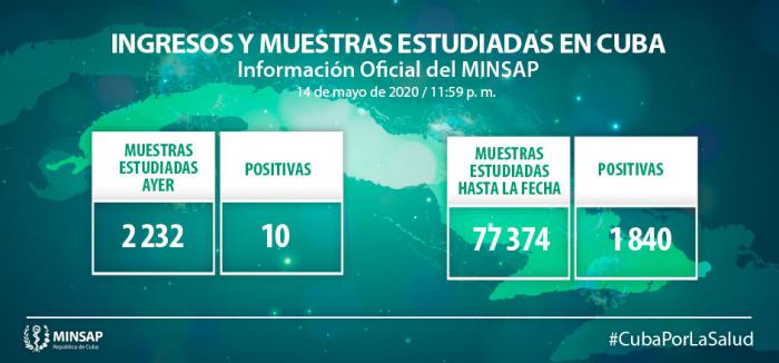 - Ciudadano cubano de 65 años residente en el municipio Unión de Reyes, provincia Matanzas. Contacto de caso confirmado anteriormente. Se mantienen en vigilancia 10 contactos.