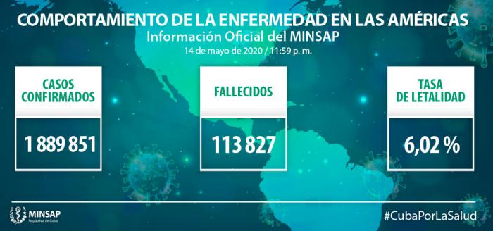 En la región de las Américas se reportan un millón 889 mil 851 casos confirmados (+ 44 mil 213), el 43,86% del total de casos reportados en el mundo, con 113 mil 827 fallecidos (+ 3 mil 113) y letalidad de 6,02% (+0,02).