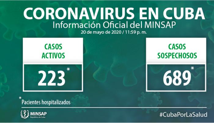 Al cierre del día de ayer, 20 de mayo, se encuentran ingresados en hospitales para vigilancia clínica epidemiológica 689 pacientes. Otras 1 mil 697 personas se vigilan en sus hogares, desde la Atención Primaria de Salud.