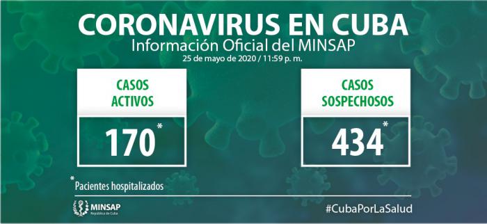 Al cierre del día de ayer, 25 de mayo, se encuentran ingresados en hospitales para vigilancia clínica epidemiológica 434 pacientes. Otras mil 823 personas se vigilan en sus hogares, desde la Atención Primaria de Salud.
