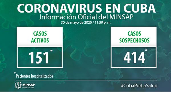 Al cierre del día de ayer, 29 de mayo, se encuentran ingresados en hospitales para vigilancia clínica epidemiológica 414 pacientes. Otras mil 748 personas se vigilan en sus hogares, desde la Atención Primaria de Salud.