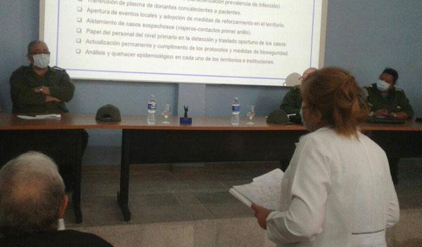 La doctora María del Carmen Cortés Santos, Directora Municipal de Salud, hizo una análisis de la situación epidemiológica del territorio, específicamente cuatro manzanas del consejo popular Pilar-Atarés, por el incremento de casos positivos a la COVID-19. Explicó que se están reforzando las medidas higiénico-sanitarias y se propondrá al Consejo de Defensa Provincial el reforzamiento de las medidas de aislamiento.