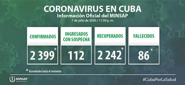 - Ciudadana cubana de 27 años de edad, residente en el municipio Diez de Octubre, provincia La Habana. Contacto de caso confirmado anteriormente. Se mantienen en vigilancia 20 contactos.