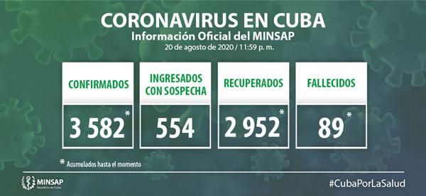 - Ciudadana cubana de 20 años de edad. Reside en el municipio Caimito, provincia Artemisa. Contacto de caso confirmado anteriormente. Se mantienen en vigilancia 12 contactos.