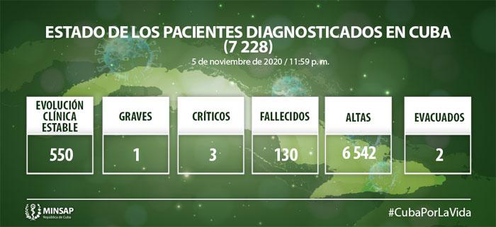 - Ciudadana cubana de 72 años de edad, residente en el municipio Pinar del Río, provincia del mismo nombre. Contacto de caso confirmado anteriormente. Se mantienen en vigilancia 20 contactos.
