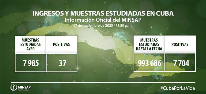 Del total de casos (37): 19 fueron contactos de casos confirmados, 18 con fuente de infección en el extranjero . De los 37 casos, 30 son cubanos y 7 extranjeros.