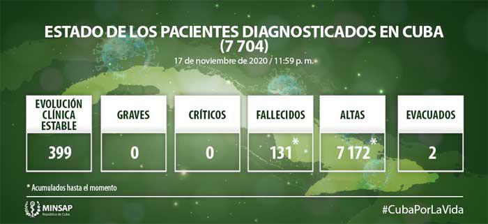 - Ciudadana cubana de 70 años de edad. Reside en el municipio Marianao, provincia La Habana. Contacto de caso confirmado. Se mantienen en vigilancia: 6 contactos.
