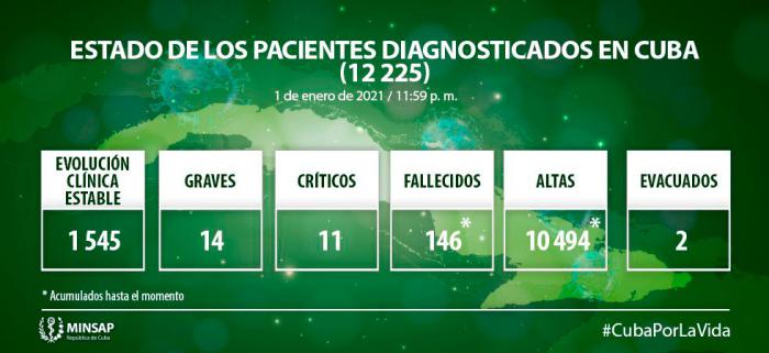 10 mil 494 pacientes recuperados (85,8%). Se atienden en las terapias intensivas 25 pacientes confirmados, de ellos 11 críticos y 14 graves.