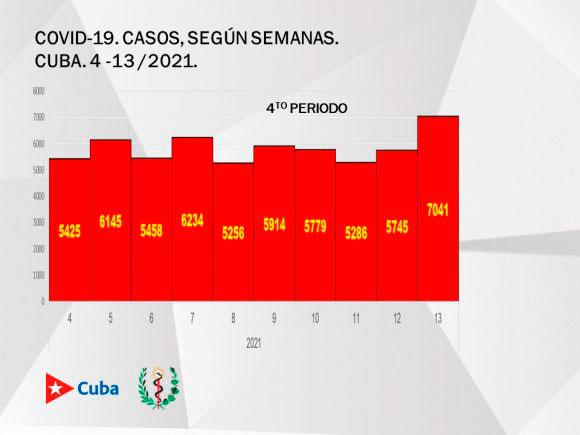 En el mes de marzo se diagnosticaron 25 686 casos; de ellos, 25 375 fueron autóctonos y 311 importados. “Se constata un incremento sostenido de casos en los últimos 15 días, marcado en la última semana (7 041).