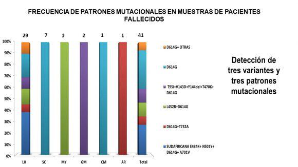 En este periodo se estudiaron 41 fallecidos de todas las provincias. En ellos se identificaron seis variantes, entre ellas la 614, la de Sudáfrica y la de California.