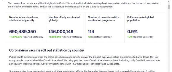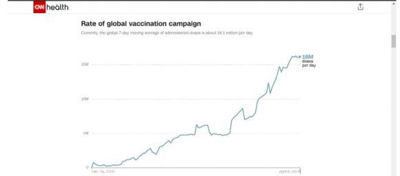 “Hasta hace dos días, cerca de 700 millones de personas han recibido al menos una dosis; cerca de 150 millones ya han recibido todas las dosis, lo que representa el 0.9 % de la población mundial.