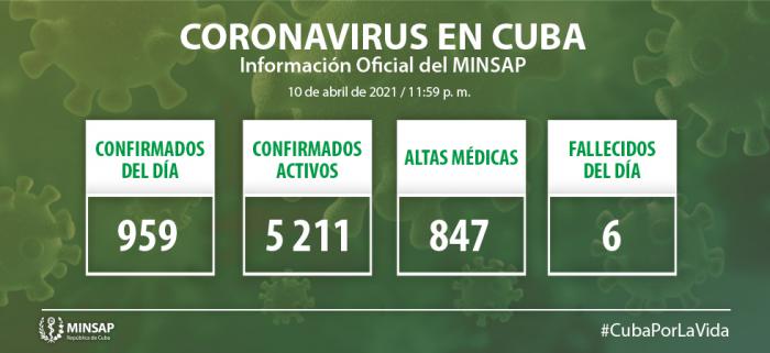 Al cierre del día de ayer, 10 de abril, se encuentran ingresados un total de 25 219 pacientes, sospechosos 3 790, en vigilancia 16 218 y confirmados activos 5 211.