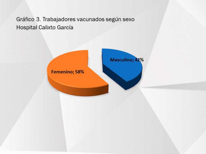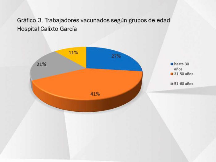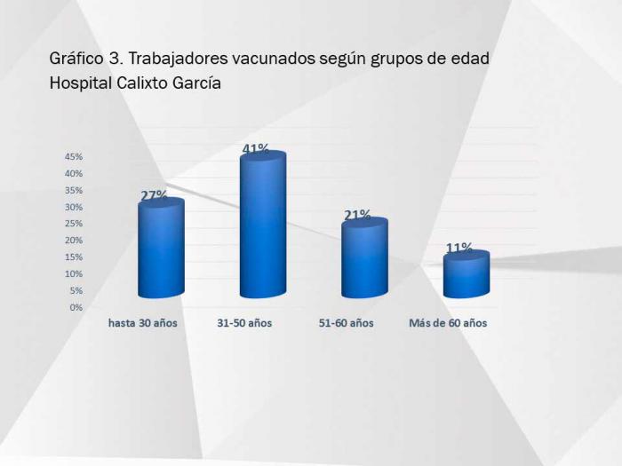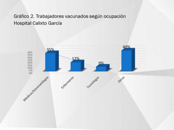 Durante el periodo de enfrentamiento a la pandemia, 81 trabajadores del Calixto García −que recibe entre 1 000 y 1 500 pacientes diarios en el cuerpo de guardia− han resultado positivos al nuevo coronavirus. De ellos, 51 fueron diagnosticados antes de la vacunación por Epidemiología del Hospital (36 en el 2020 y 15 en 2021), representando el 2% del total de trabajadores.