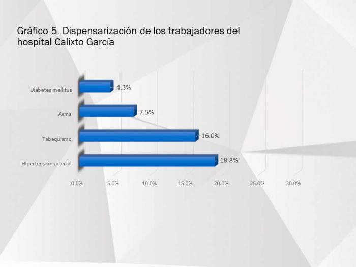 El hospital tiene una plantilla aprobada de 3 078 trabajadores. En estos momentos, 2 546 están activos y en el estudio de intervención se escogió una muestra de 2 187 personas.
