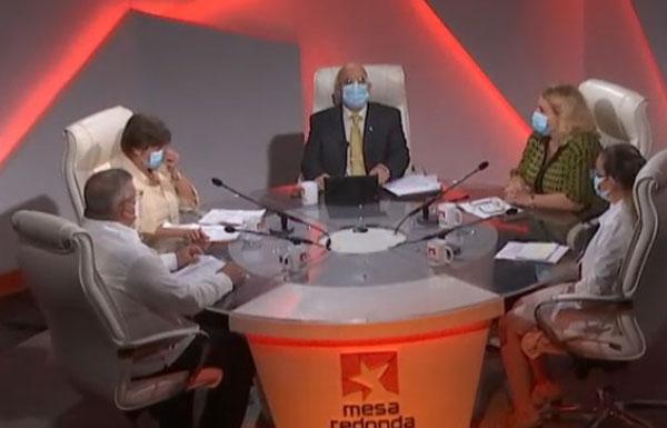 Directivos de Salud Pública, del Centro de Ingeniería Genética y Biotecnología y del Instituto Finlay de Vacunas comparecen este jueves en la Mesa Redonda para actualizar sobre los avances y la aplicación de los candidatos vacunales cubanos.