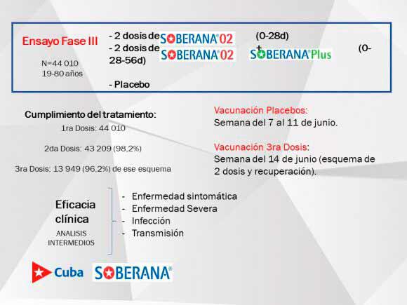 En el caso del estudio de intervención en el Calixto García, se aplica Soberana 02. “Para llevarlo a cabo se tuvo en cuenta la organización del estudio, el cumplimiento ético y regulatorio, la logística, el clima, el cumplimiento de los cronogramas y algunos impactos iniciales”.