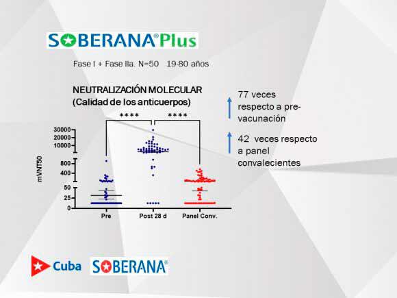 Específicamente en el caso de Soberana Plus enfocada a los convalecientes, agregó que el objetivo es amplificar la respuesta inmune en aquellos linfocitos que son capaces de neutralizar mejor el virus.