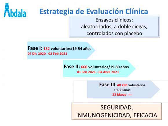 Sobre la eficacia, dijo que se prevé su evaluación tras 14 días desde la última dosis. No obstante, también se realizan estudios intermedios. De igual manera, progresan las conversaciones con la entidad regulatoria para ejecutar ensayos clínicos en pacientes en edades pediátricas, los cuales se encuentran en la fase de evaluación definitiva para su aprobación.
