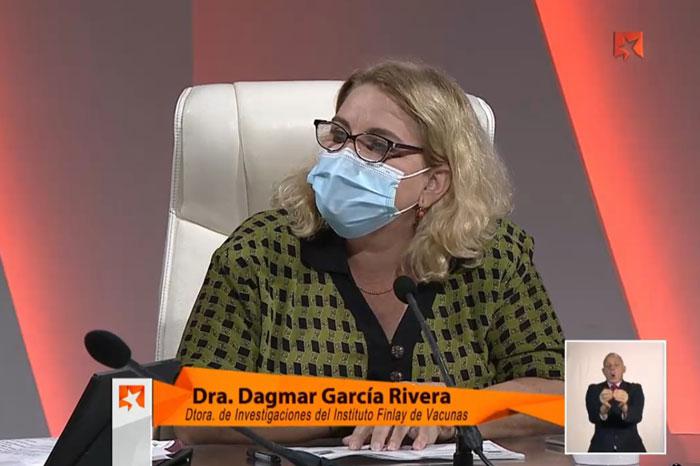 La directora de Investigaciones del Instituto Finlay de Vacunas aseguró que la institución se encuentra cerca de realizar el primer análisis intermedio para buscar datos sobre la eficacia. Para ello se comparará la incidencia de casos sintomáticos del grupo placebo respeto a los sujetos vacunados. “El gran reto está en integrar la información de las bases de datos de vacunados, positivos, hospitalizados y graves”.