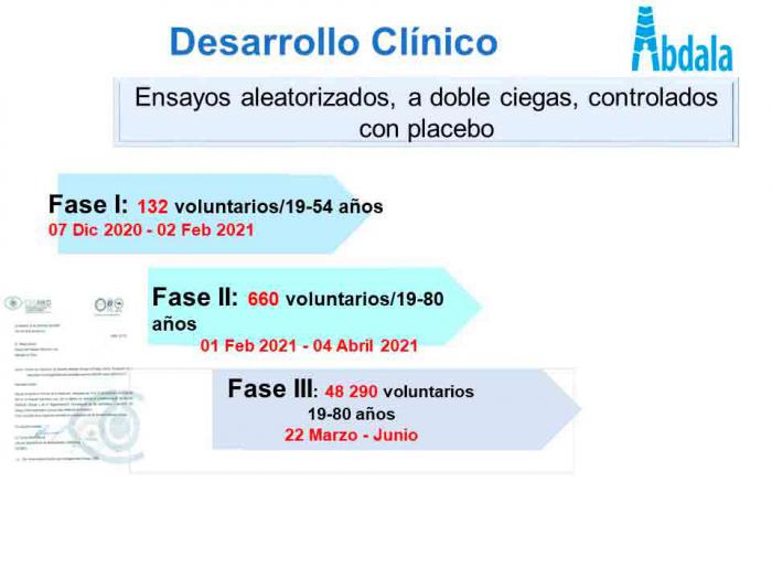 La experta comentó que el 1 de mayo se concluyó el esquema de inmunización en el estudio clínico fase III, en el cual se involucraron 48 290 sujetos. “En el desarrollo clínico de Abdala tenemos que reconocer a todas las personas que participaron, pero, en especial a los placebos, por el altruismo y la contribución demostrada en cada una de las fases”.