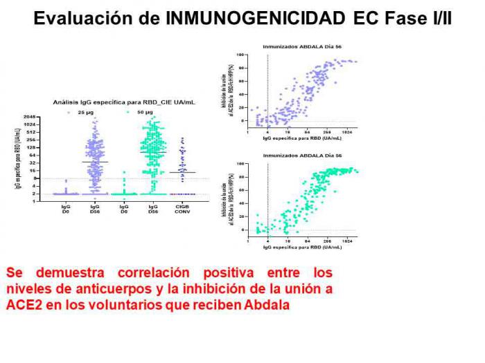Con relación al desarrollo clínico del candidato vacunal Abdala, la especialista precisó que el 7 de diciembre comenzó el estudio clínico fase I con 132 sujetos de entre 19 y 54 años. Ahí se estudió la seguridad y la inmunogenicidad.