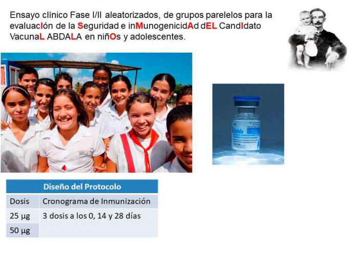 También se está esperando la autorización del estudio clínico Ismaelillo, ensayo fase I/II aleatorizado, de grupos paralelos, para la evaluación de la seguridad e inmunogenicidad del candidato vacunal Abdala en niños y adolescentes.