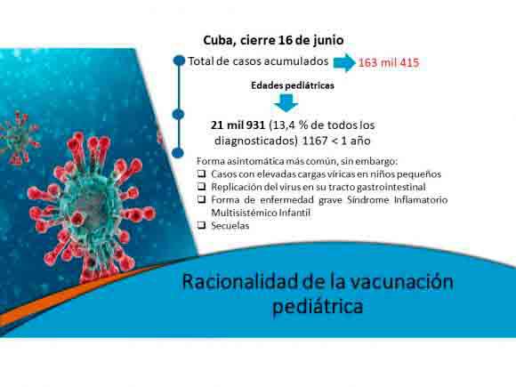 Al cierre del 16 de junio, el país acumulaba un total de 163 415 pacientes de COVID-19. Si bien al inicio de la enfermedad en Cuba, el de edades pediátricas era el grupo de menor incidencia, al culminar la jornada de este miércoles ya se reportaban 21 931 diagnosticados con el coronavirus en este segmento.
