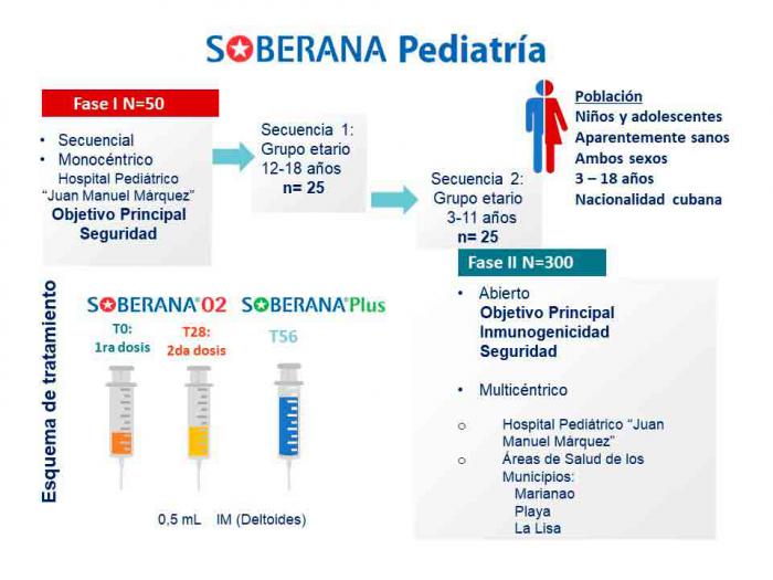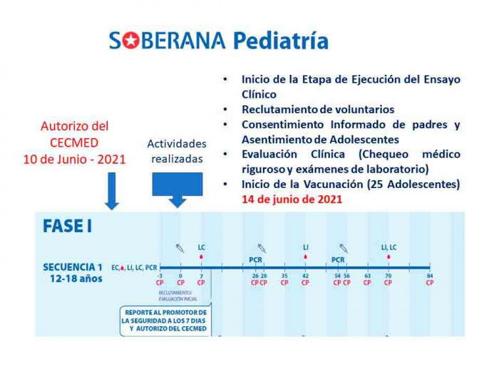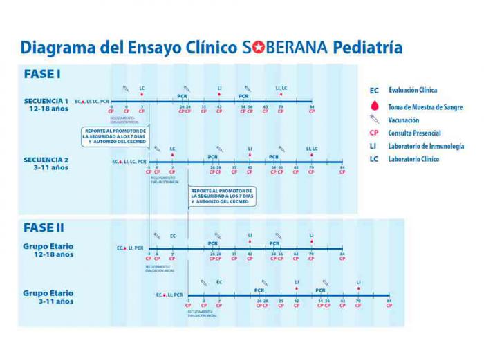 “El estudio es secuencial, porque se va a desescalar en edades: primero los mayores (adolescentes), y después de los siete días, cuando ya se tengan los elementos de seguridad, se emitirá un informe al Cecmed por el comité independiente de monitoreo de datos (es externo al promotor, emite el informe, lo entrega al Cecmed, y con ese autorizo se iniciaría con el grupo etario de tres a 11 años. Ello permitiría, asimismo, el paso a la fase II de los niños de 12 a 18 años, que ya fueron evaluados en esta primera etapa.